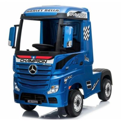 Camion electric pentru copii Mercedes XMX622B Blue, cu telecomanda 2.4G, doua motoare de 45W, baterie dubla de 12V7Ah, afisaj LCD, MP4, conectivitate Bluetooth, port MP3 si USB, dimensiune 143 x 72 x 67 cm